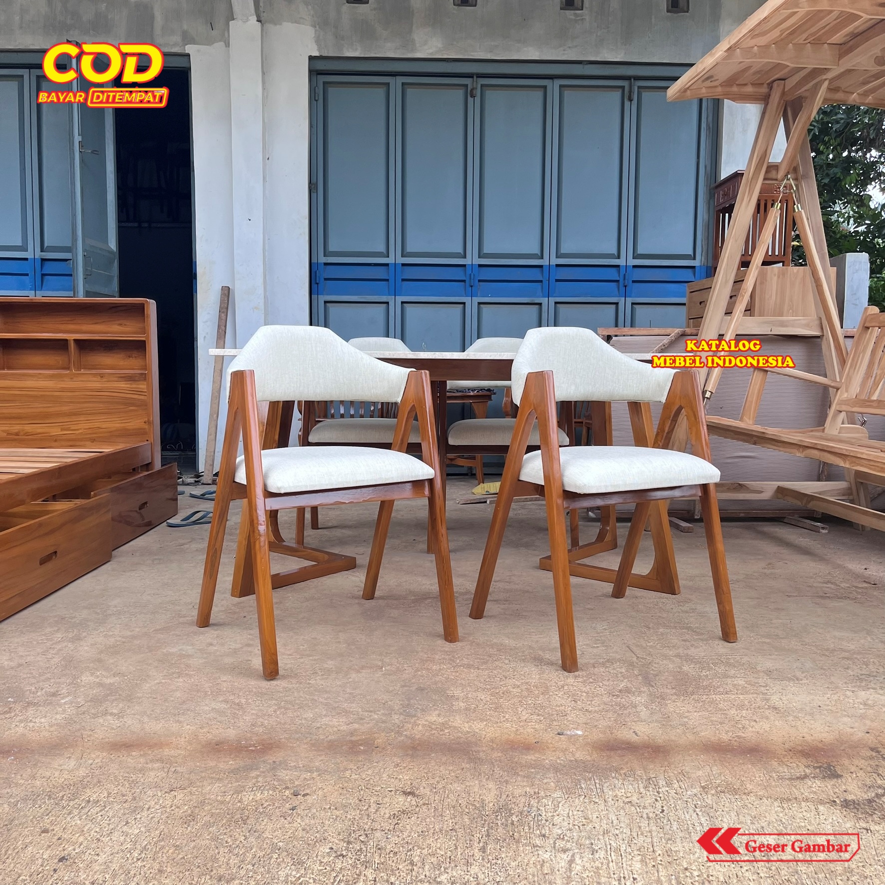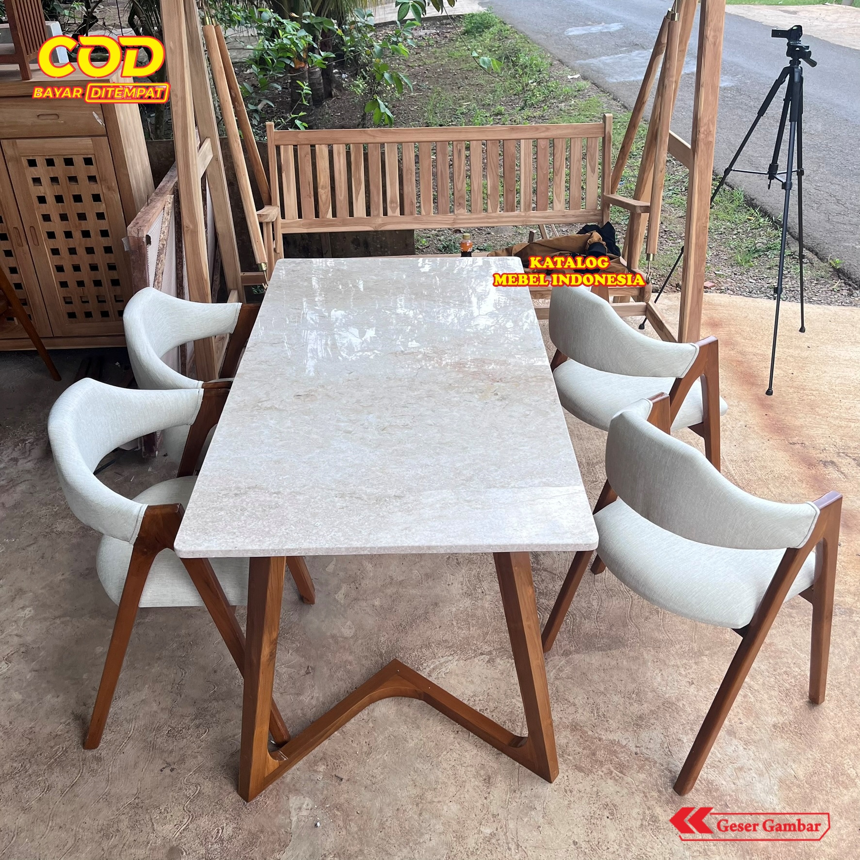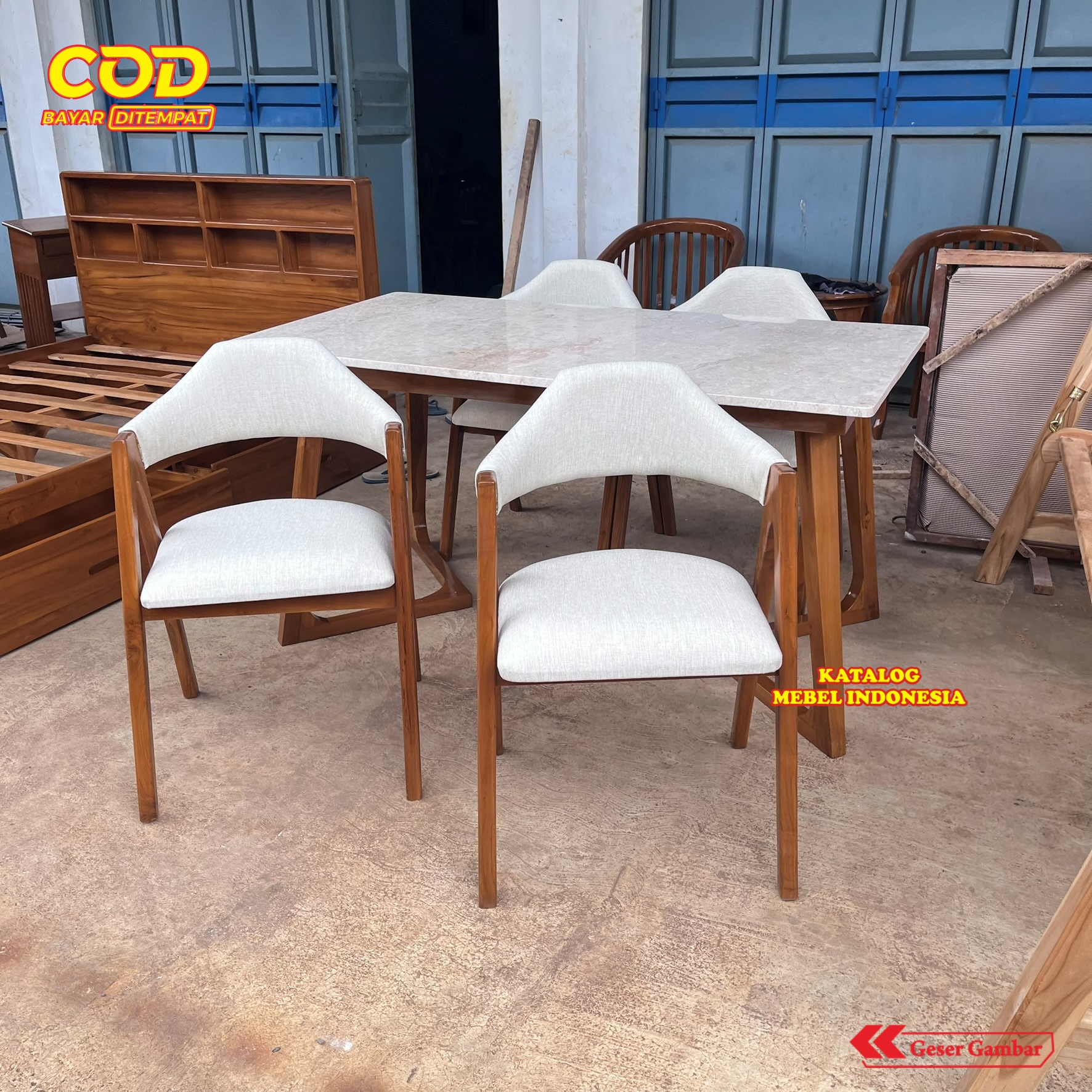 Set Meja Makan Marmer 4 Kursi Minimalis Modern Kayu Jati - Meja Makan Cafe Scandinavian Elegant Putih