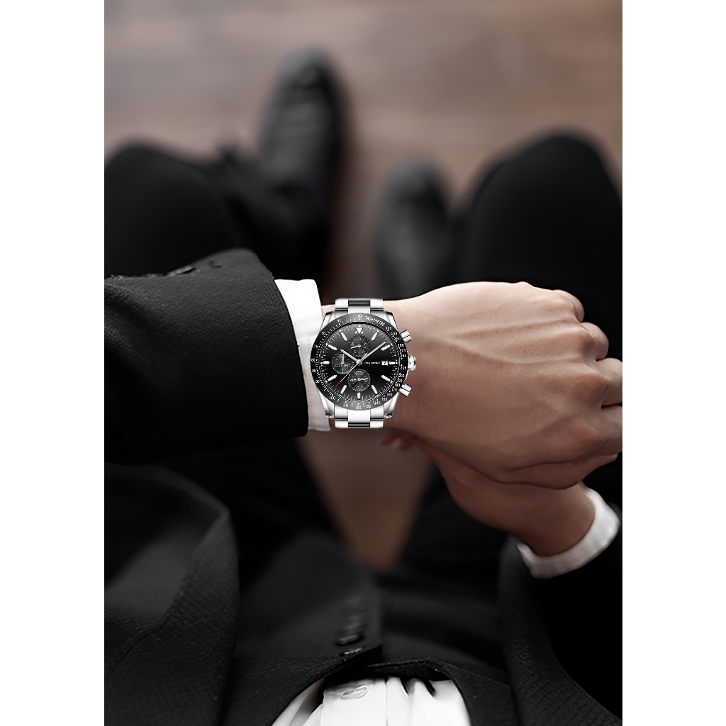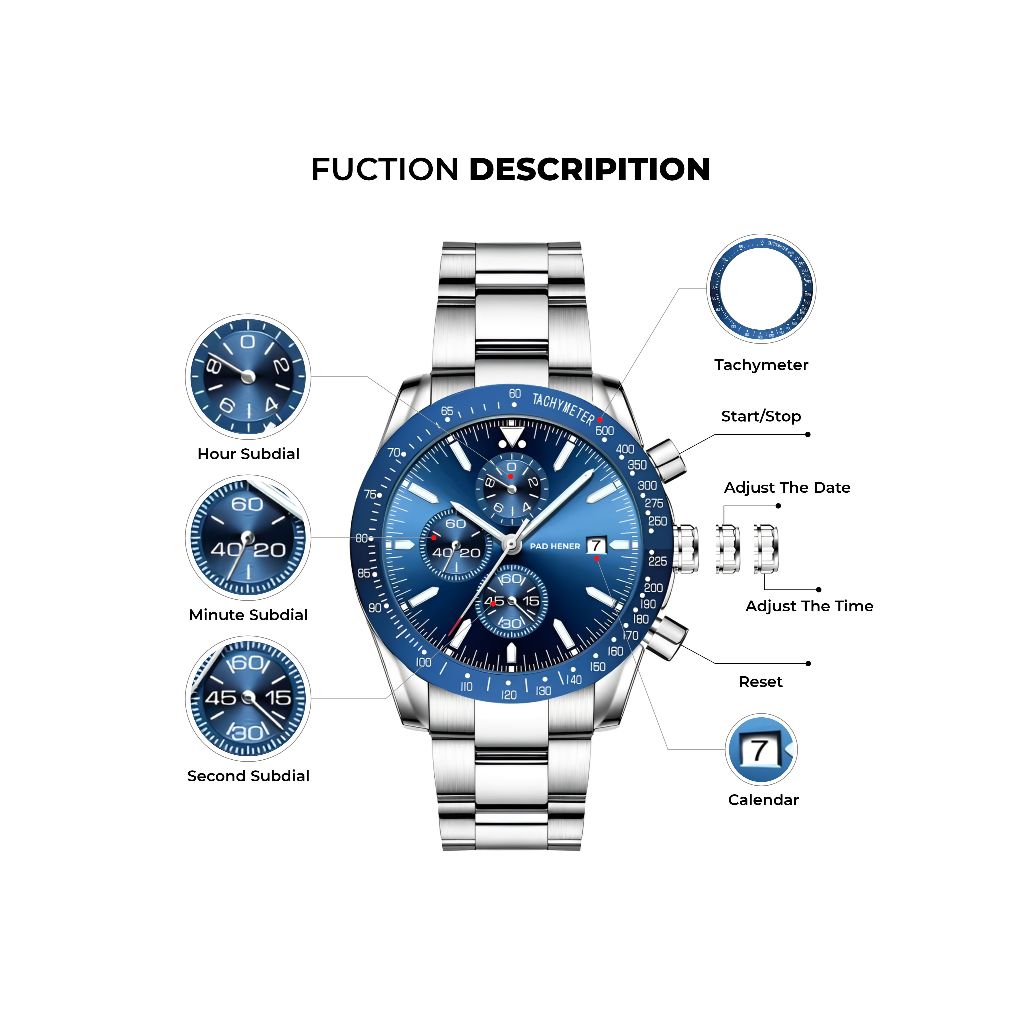 PAD HENER TURQUOISE Jam Tangan Pria Stainless Steel Original Anti Air Rantai Mewah Luxury Chronograph Quartz Glow In The Dark