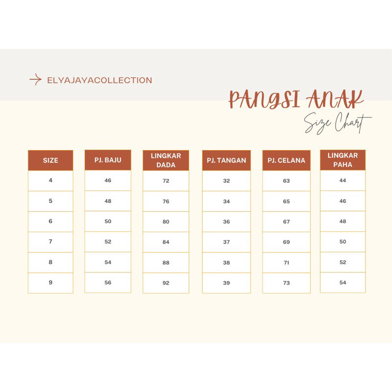 No. 4 (3-4 Tahun), No. 5 (5-6 Tahun), No. 6 (7-8 Tahun), No. 7 (9-10 Tahun), No. 8 (11-12 Tahun), No. 9 (13-14 Tahun