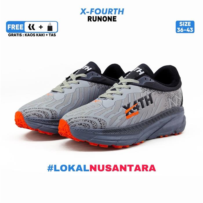 X-FOURTH RUNONE ABU HITAM - SEPATU TRAIL RUNNING PRIA WANITA ANAK ANAK KASUAL OLAHRAGA OUTDOOR TRIALRUN FASHION DINOSAUR