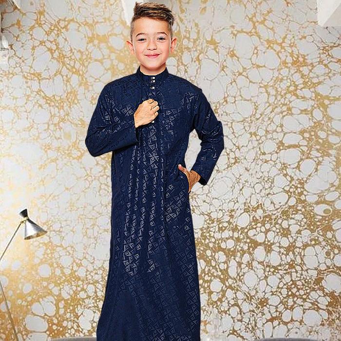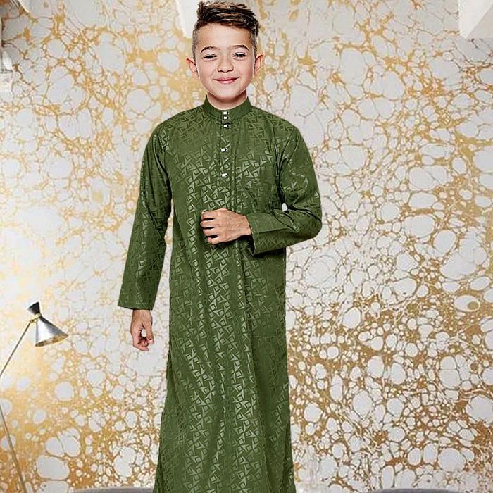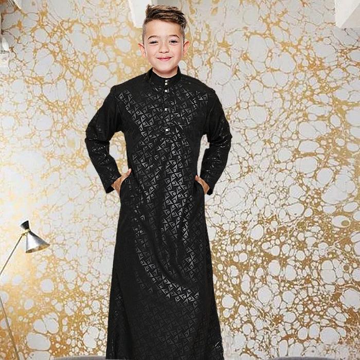 JUBAH ANAK LAKI LAKI EMBOS MOTIF SURIKEN PREMIUM GAMIS ANAK PRIA BISA MUSLIM - HITAM, 4-5 TH