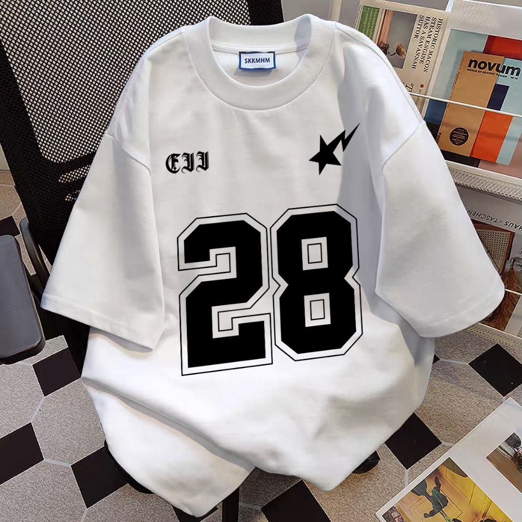 [Star] kaos oversize wanita putih black premium lengan pendek motif angka 28 atasan wanita kekinian yesgirl