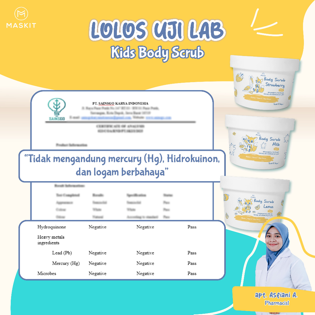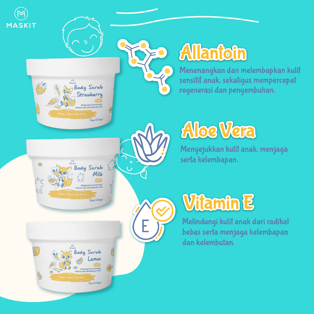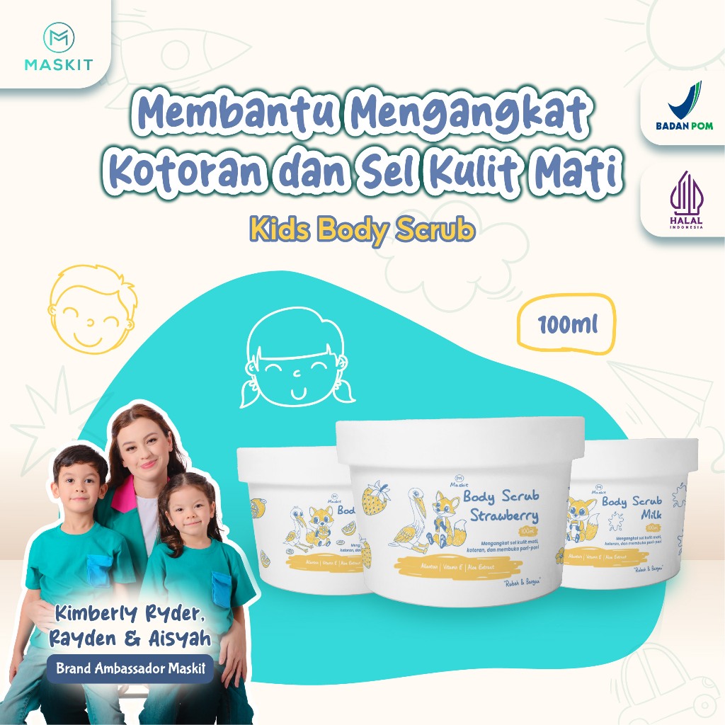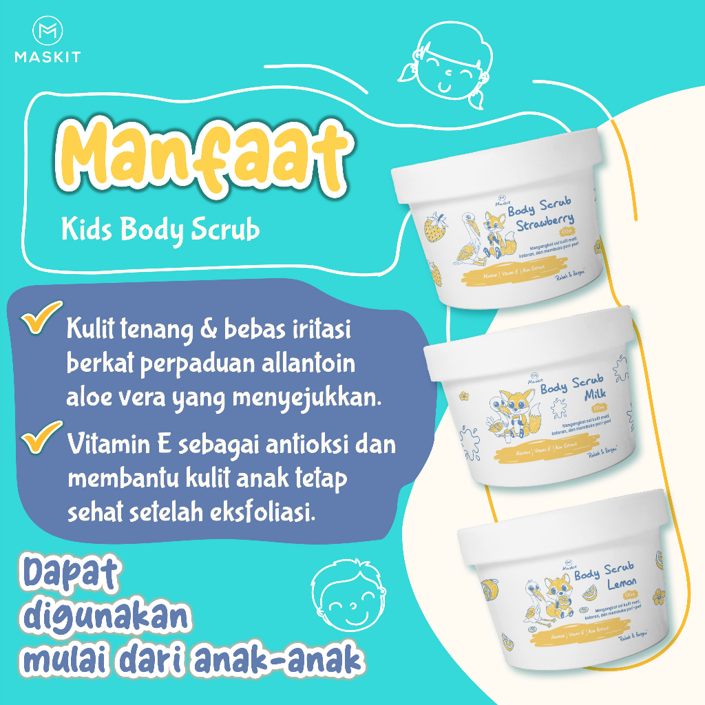 Kids & Teens Body Scrub Strawberry, Milk, Lemon - Scrub Badan untuk Anak 100ml - Maskit
