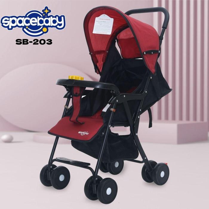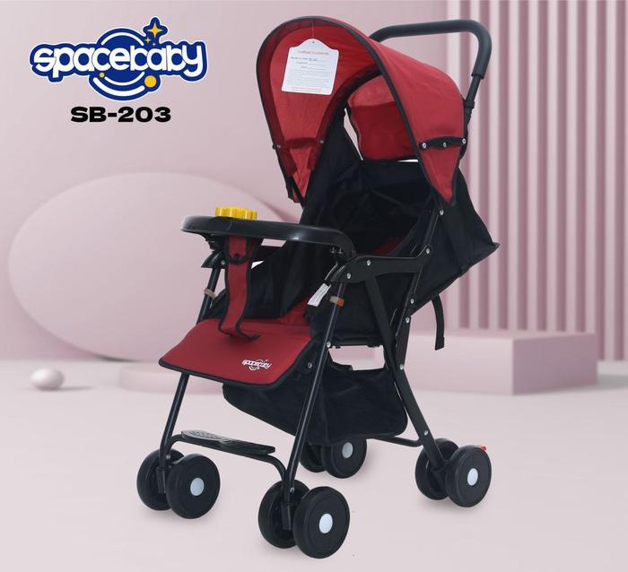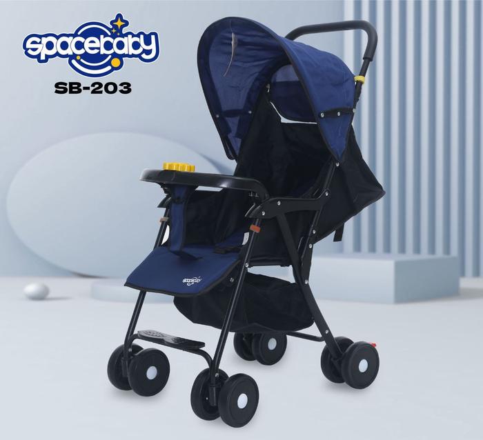 SPACEBABY SB203 KERETA DORONGAN BAYI PENGATURAN POSISI SANDARAN SAFETY BAR W CROSS BELT BABY STROLLER RODA - BIRU