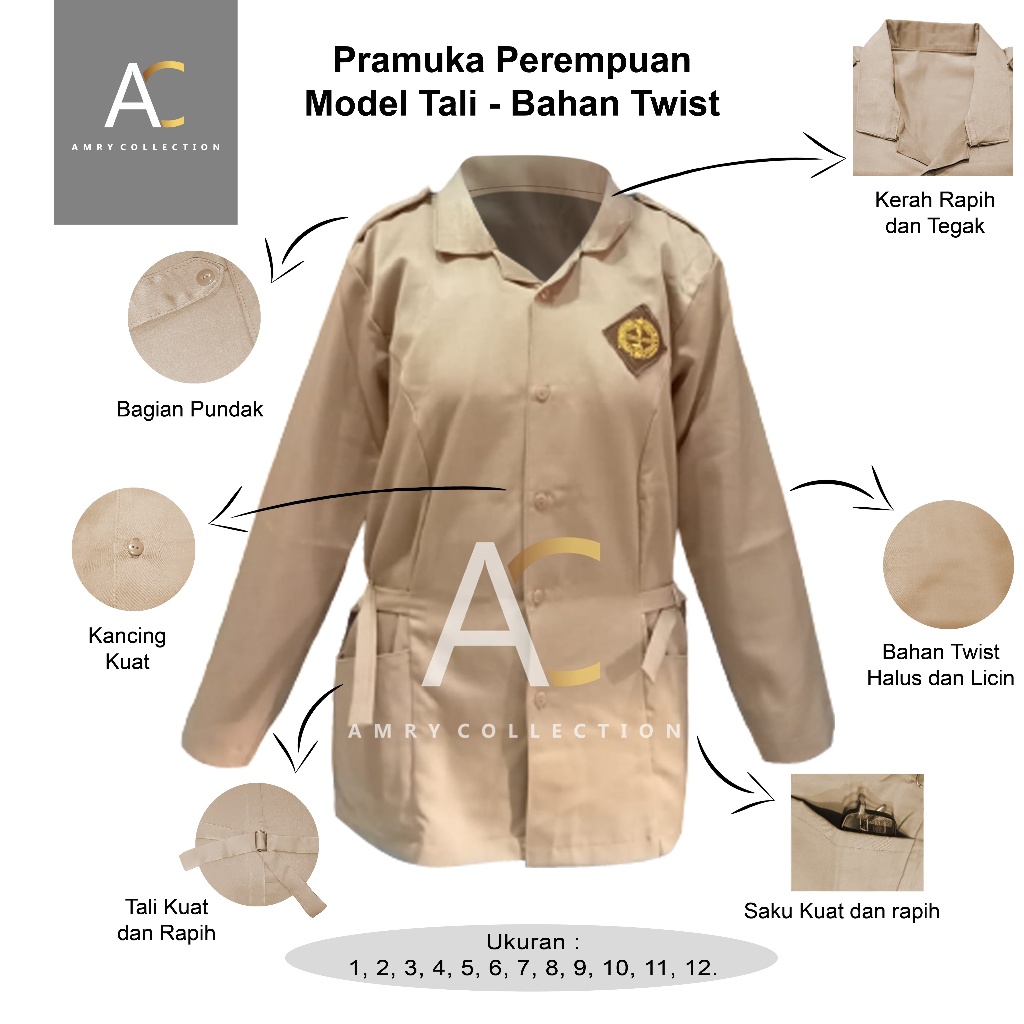 Seragam Pramuka Baju Pramuka Model TALI Lengan Panjang Seragam Sekolah By.Amrycollection (TWIST)