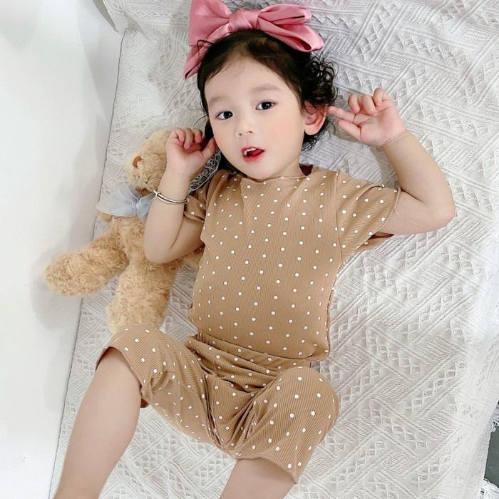 Mibaby Piyama Anak Setelan Baju Tidur Polkadot/Baju Tidur Anak Berkualitas - Cream, 80 6-12 Bulan