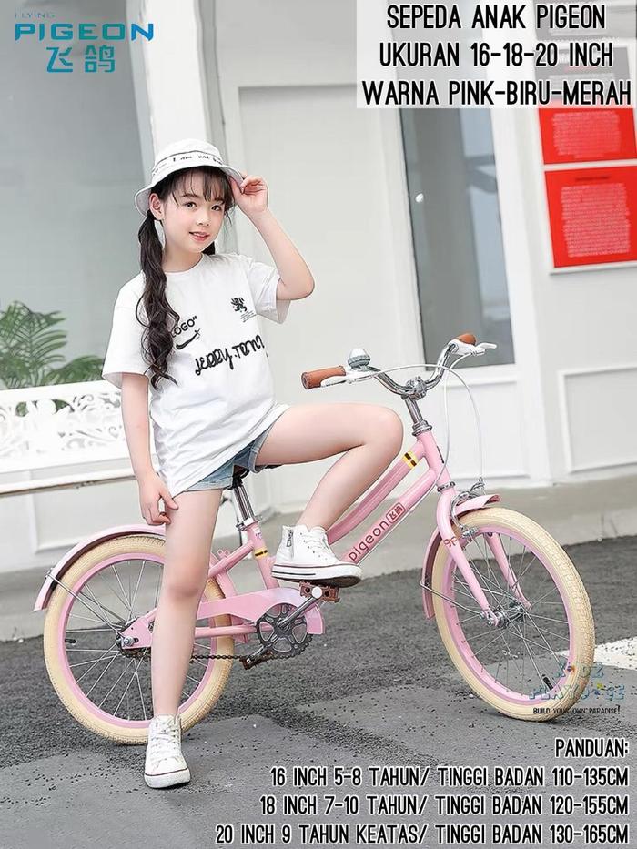 SEPEDA ANAK PIGEON 18 DAN 20 INCH SEPEDA PINK DAN BIRU [READY STOCK] - MERAH MUDA, 18 INCH