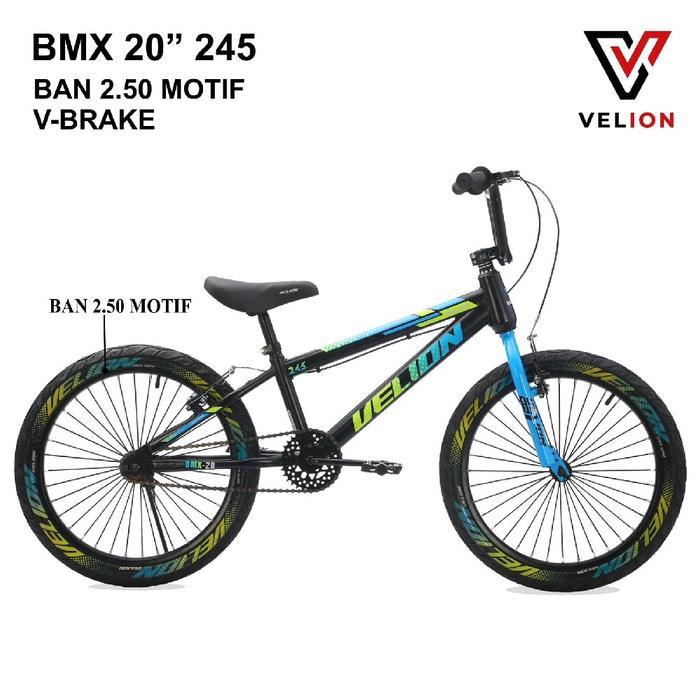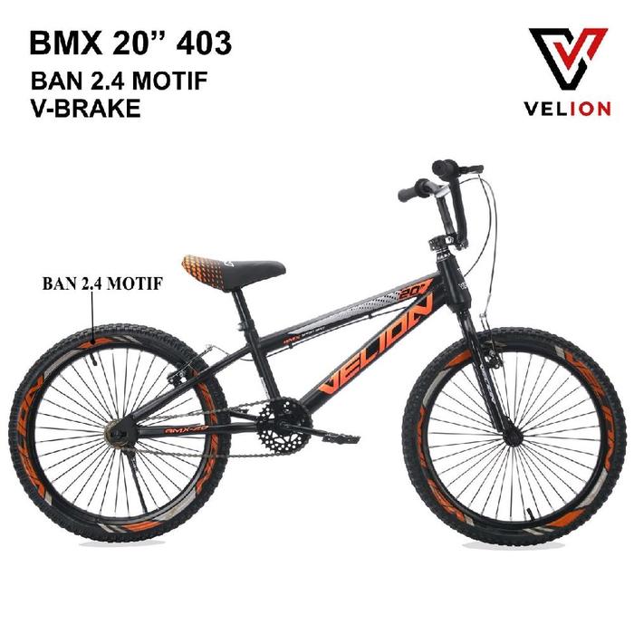 SEPEDA BMX 20 VELION FRAME BESI SPOKE MOTOR BAN JUMBO 2.40 ANAK COWO - VELION 403 BK RD