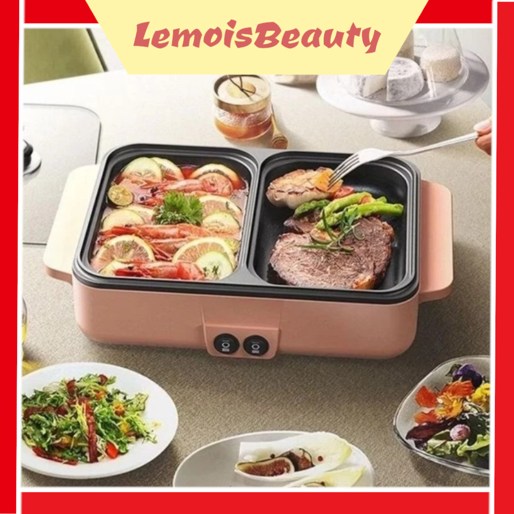 LemoisBeauty- Mini Electric Hotpot/ Steamboat & Grill Pan/ BBQ Multifungsi/ Panci Listrik 2 in1