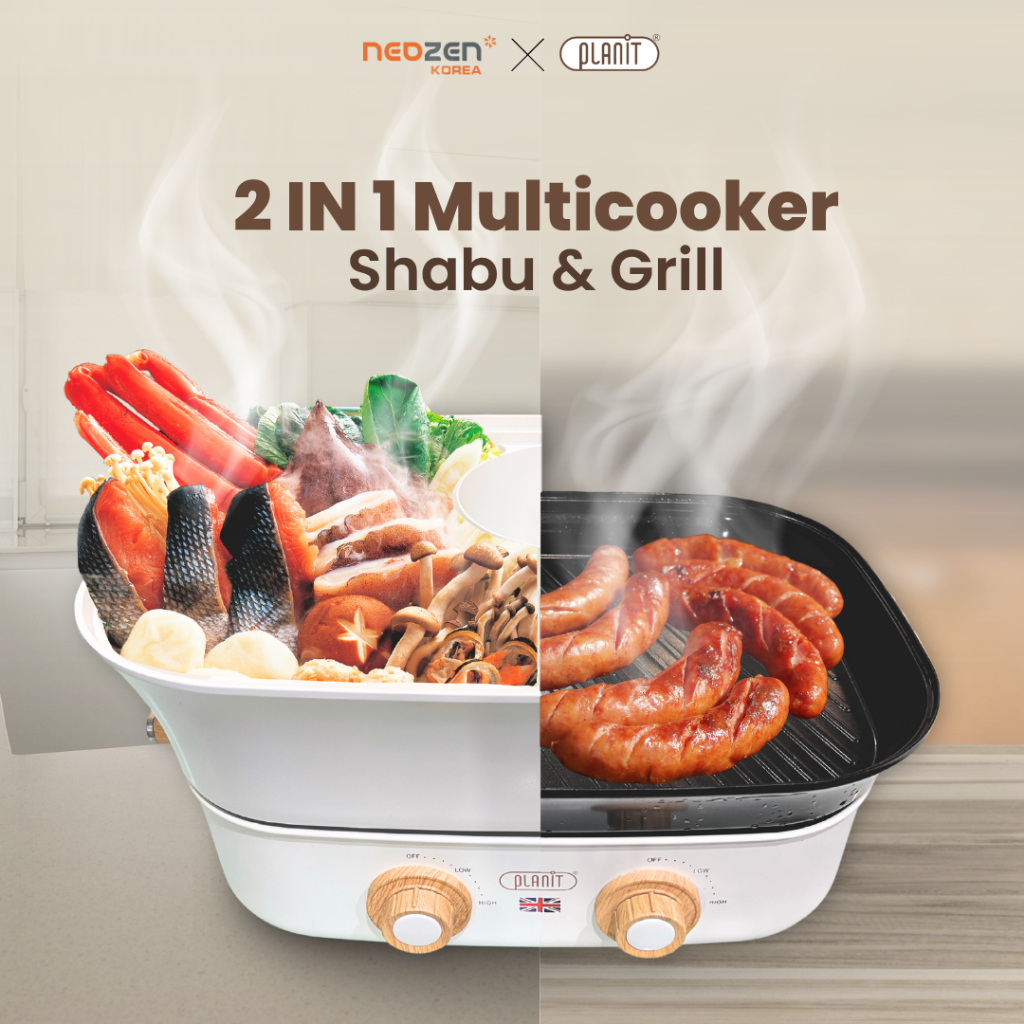 NEOZEN x PLANIT SHABU GRILL - Alat Masak Shabu Hot Pot Multifungsi 2 in 1 Low Watt - Korean Bbq Grill Pan