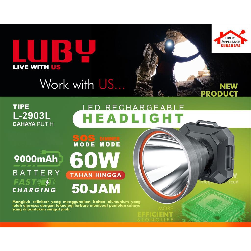 LUBY Senter Kepala LED Cas - 60W / 60 Watt 9000mAh Tahan 50 Jam L-2903L Cahaya Putih / L-2903K Kuning - Headlight LED