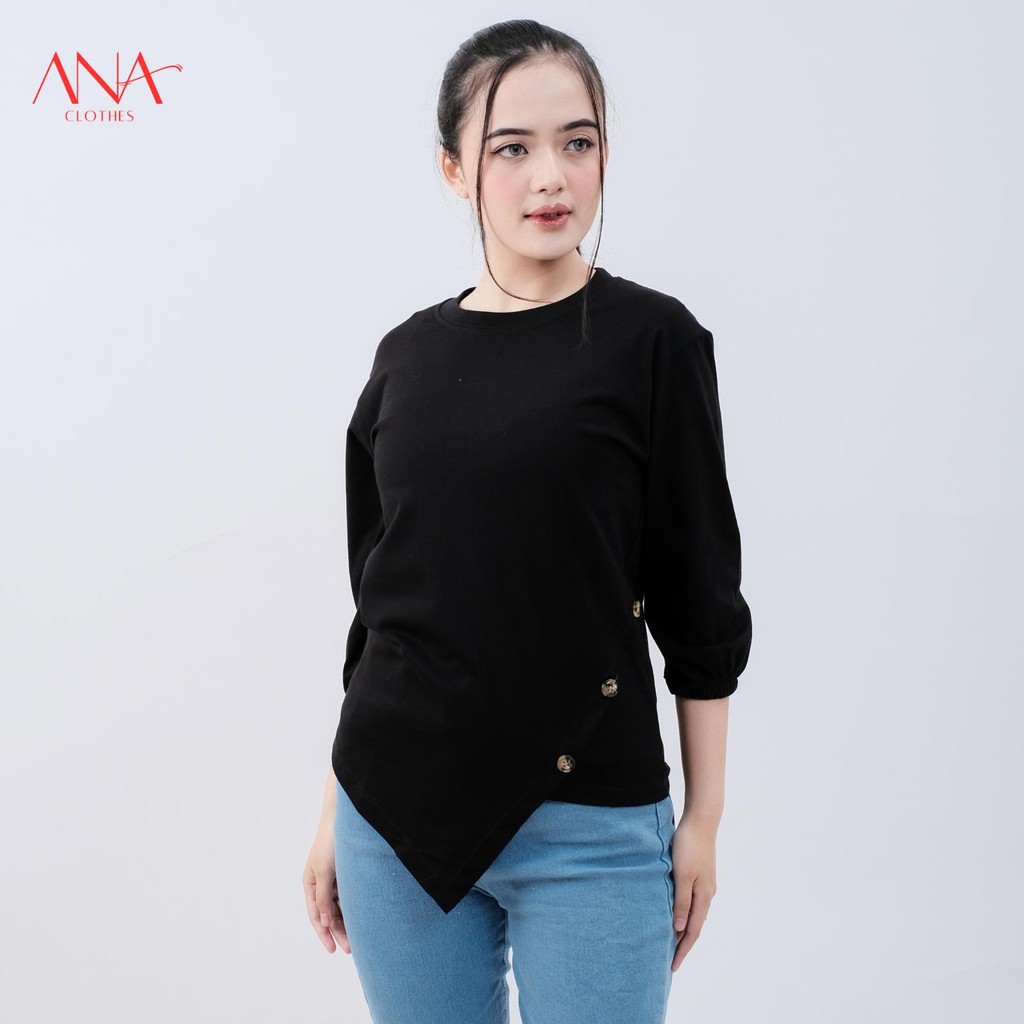 ANACLOTHES Baju Wanita Lengan Panjang Model Kancing Samping Bahan Cotton Combed Kaos Cewek polos