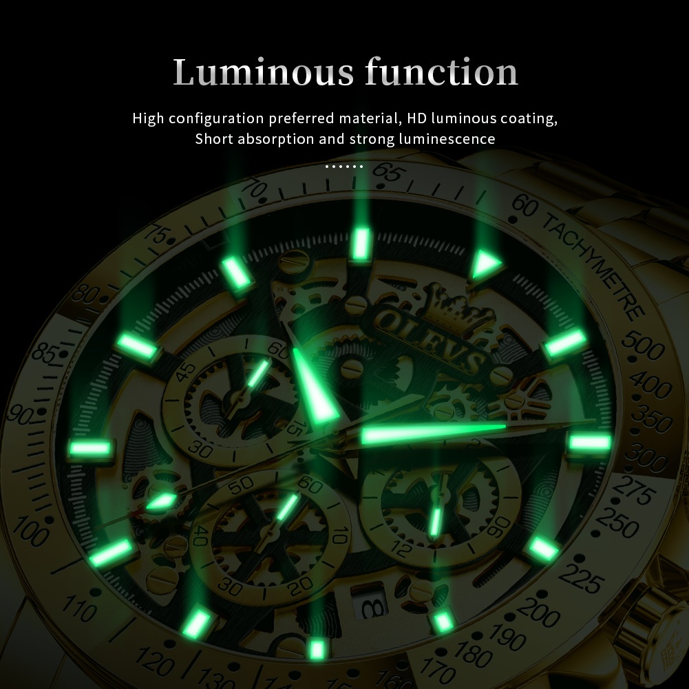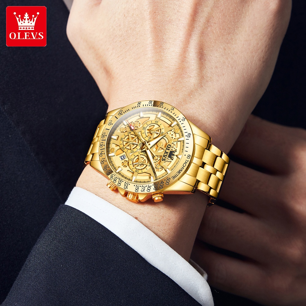 OLEVS Jam Tangan Pria Anti Air Mewah Keren Original Cowok Bisnis Aesthetic Kalender Tahan Arloji Terbaru Putih Gold Stainless Steel Men Watch 9913