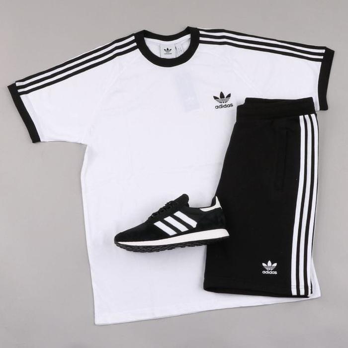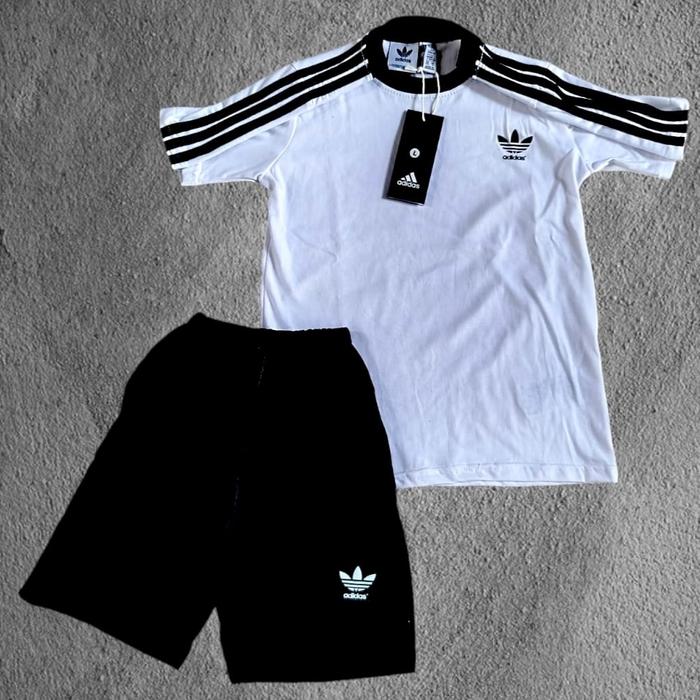 Tshirt Setelan Adidas Anak Putih Hitam - Putih Hitam, 1-2 Tahun