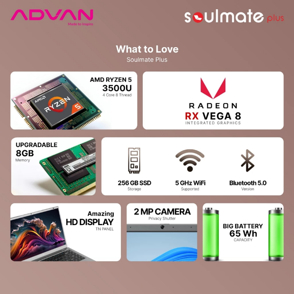 ADVAN Soulmate Plus AMD Ryzen 5 3500U 8GB 256GB WIndows 11