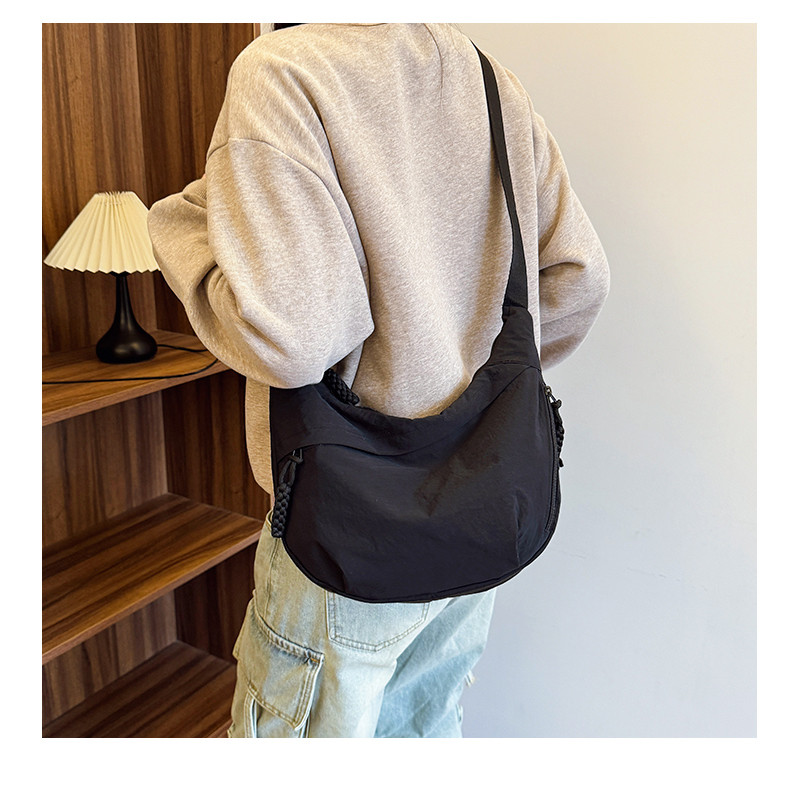 Tas Selendang Nylon Baru 2025, Kapasitas Besar, Gaya Minimalis Korea, Tas Samping, Ringan, Warna Solid, Bentuk Kantong Dumpling