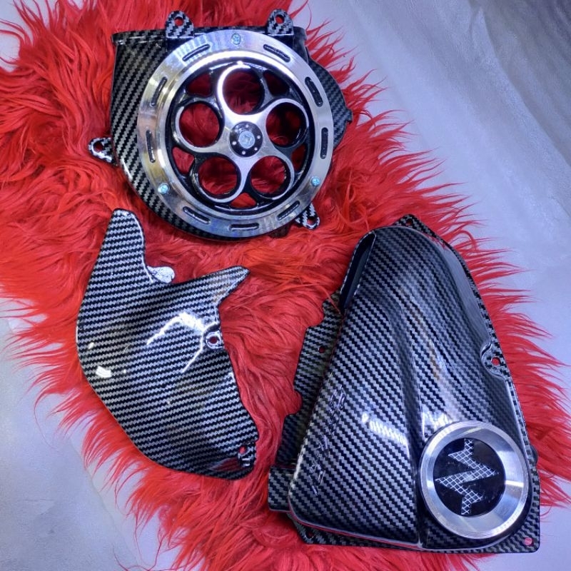 (3pcs) PAKETAN CARBON KIPAS SPINER/FILTER VELOSCOPE/KEONGAN HONDA BEAT SCOOPY VARIO FI STATER KASAR