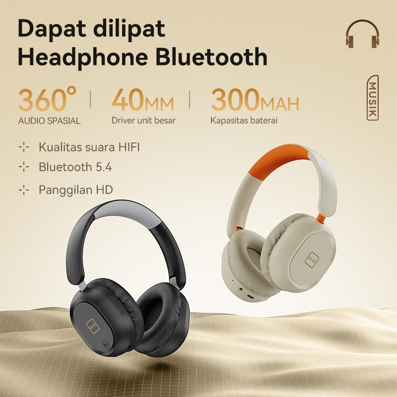 Headphone Bluetooth ASTON 5.4 Wireless AT-TW166 Krem Cute Music Noise reduction HIFI 9D Original