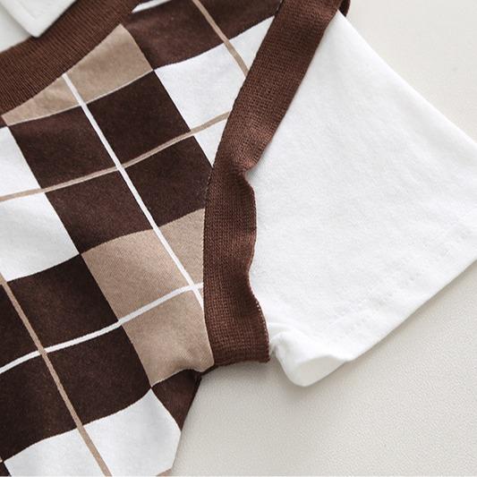Brownieground Setelan Anak Kembar Lengan Pendek Model Baju Sekolah Ala Korea Usia 6 Bulan - 5 Tahun Import Premium Stp-7