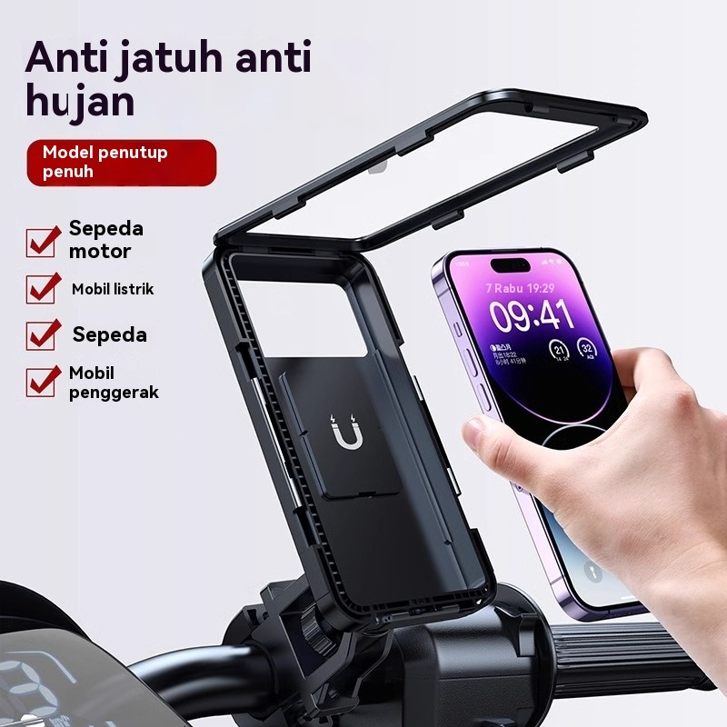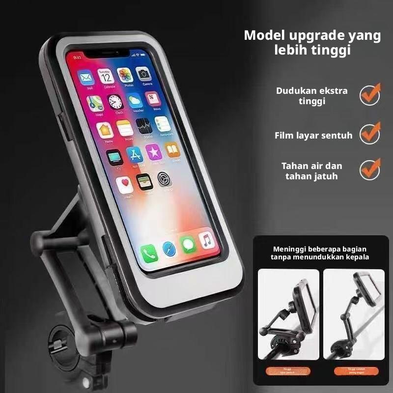 Holder Phone Waterproof 360 Stand Sepeda Motor Anti Air Holder Stang Motor Anti Basah 00050