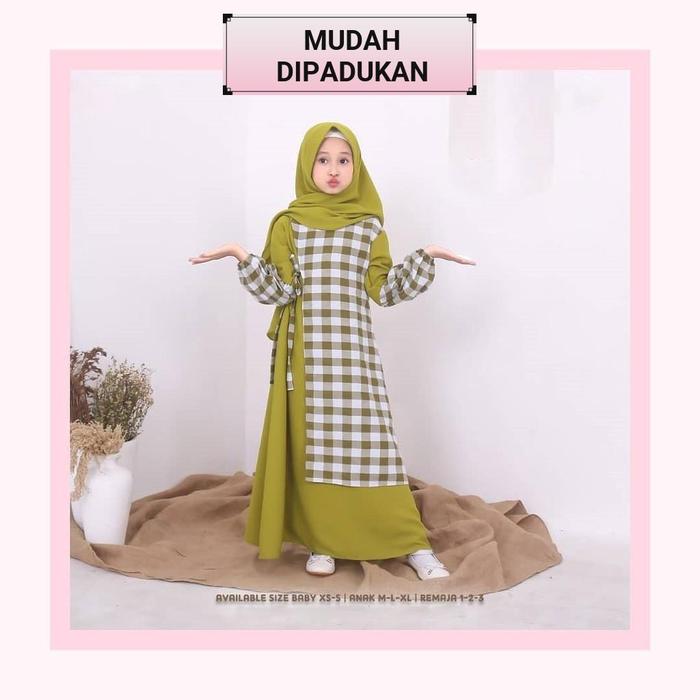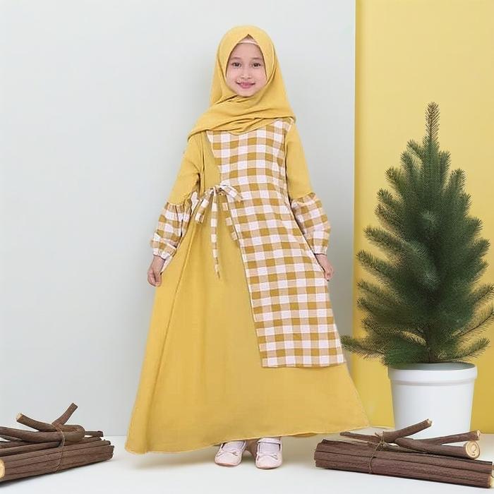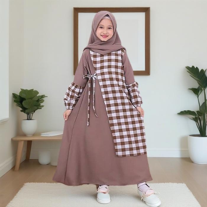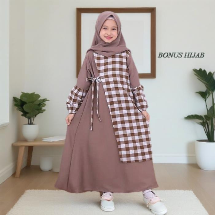 GAMIS ANAK FREE HIJAB USIA 4 5 6 7 8 9 10 11 12 13 14 15 THN SYARI MUSLIM DRESS LEBARAN BAJU WANITA REMAJA SETRIP CRINKLE AIRFLOW D3W4SA - COKLAT, M