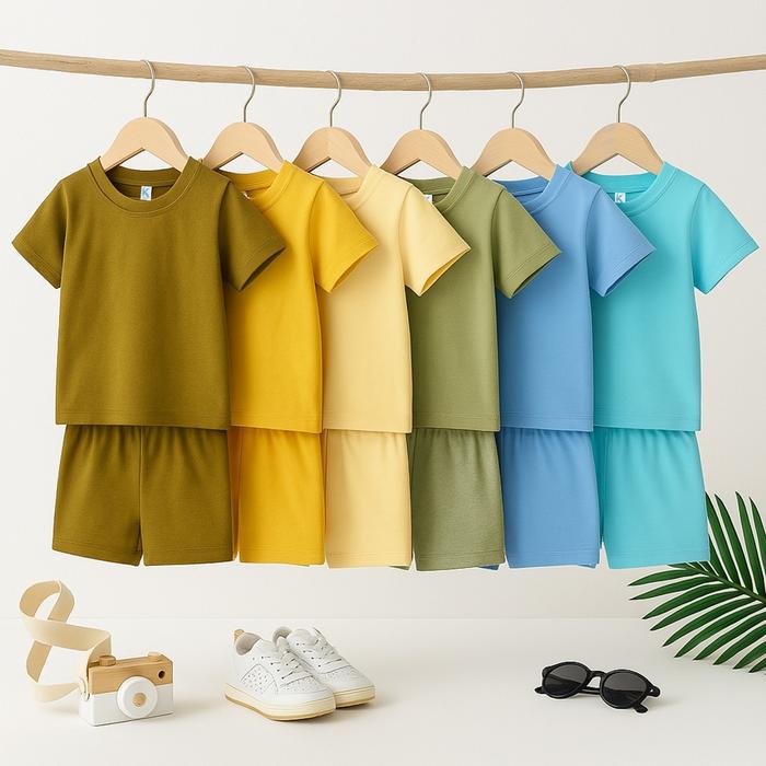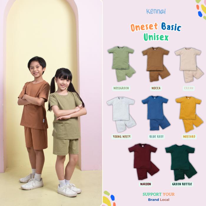 Kennai Setelan Kaos Polos 2 Anak Usia 1 - 12 Tahun - Moss Green, S