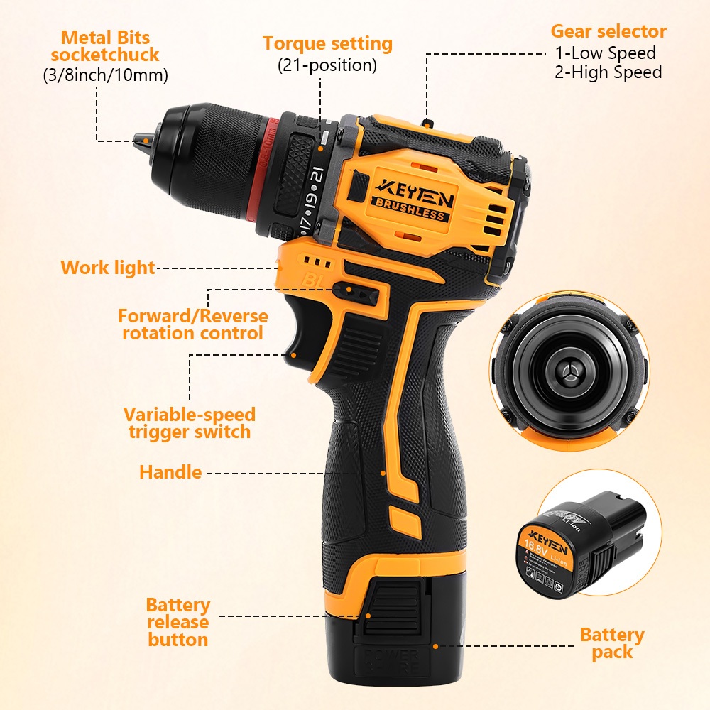 KEYTEN Mesin Bor Listrik 1 Set Lengkap Impact Wrench Ori Cordless Multifungsi 13mm 16mm Apr Bosch Jumbo BateraI