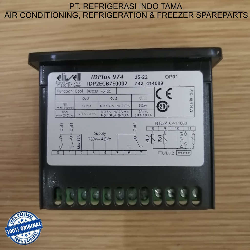 ELIWELL 974 230V + Sensor NTC Hitam IDPLUS Digital Thermostat / Temperature Control / Temperature Controller