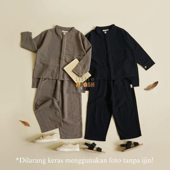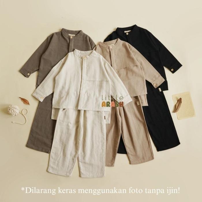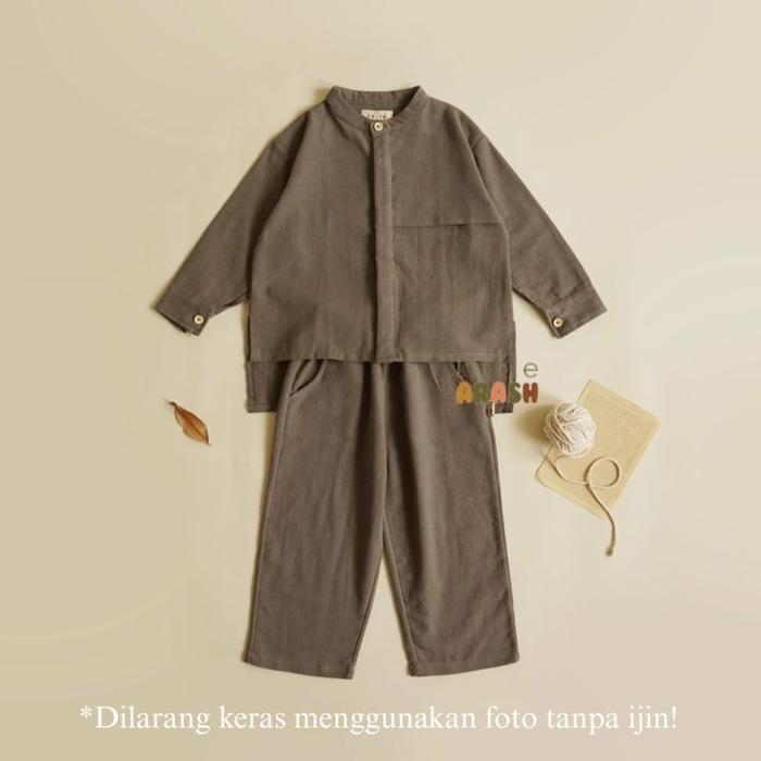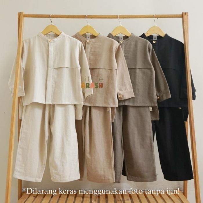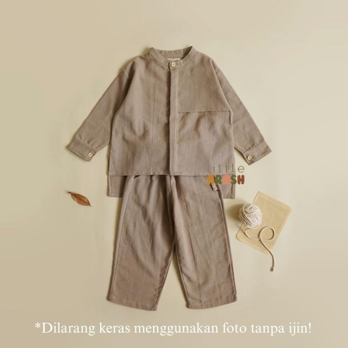 LITTLE ARASH | NIZAM KOKO SET | SETELAN KOKO ANAK RAYA | BUSANA MUSLIM ANAK LAKI LAKI LINEN ATASAN - OAT, S
