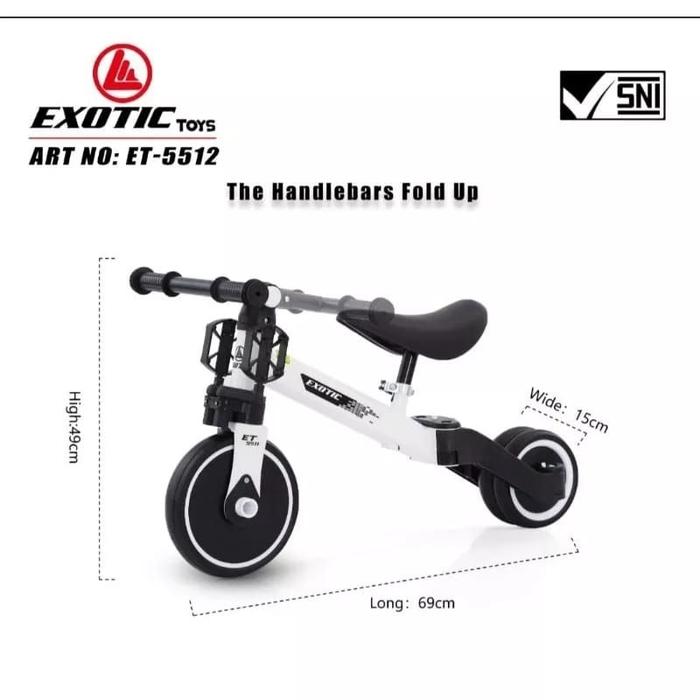 SEPEDA RODA TIGA ANAK BALANCE BIKE 6 IN 1 EXOTIC ET 709-7 ET 5512 T32 YUKITA LIPAT PUSH BIKE - ET 709-7 PINK, PACKING DU