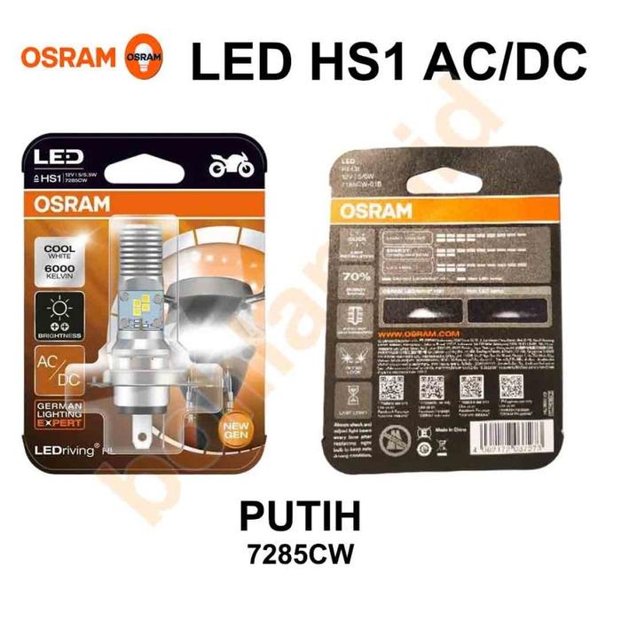 Lampu Motor LED OSRAM Putih 6000K HS1 H4 Hi Lo Kaki 3 Arus AC dan DC - Putih 7285CW putih