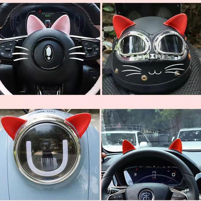 Aksesoris Telinga Kuping Kucing Dekorasi Helm Sepeda Motor Cat Ear 2Pc - Hitam