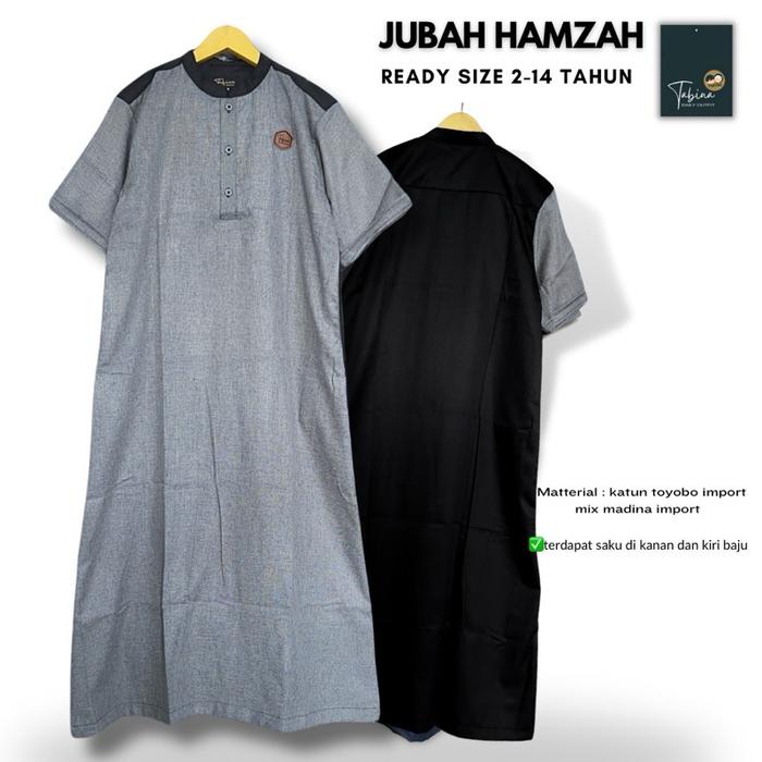 JUBAH GAMIS ANAK LAKI LAKI DAN REMAJA LENGAN PENDEK TABINA SERI HAMZAH USIA 2 HINGGA 14 TAHUN - HAMZAH HITAM, 2 2-3 THN