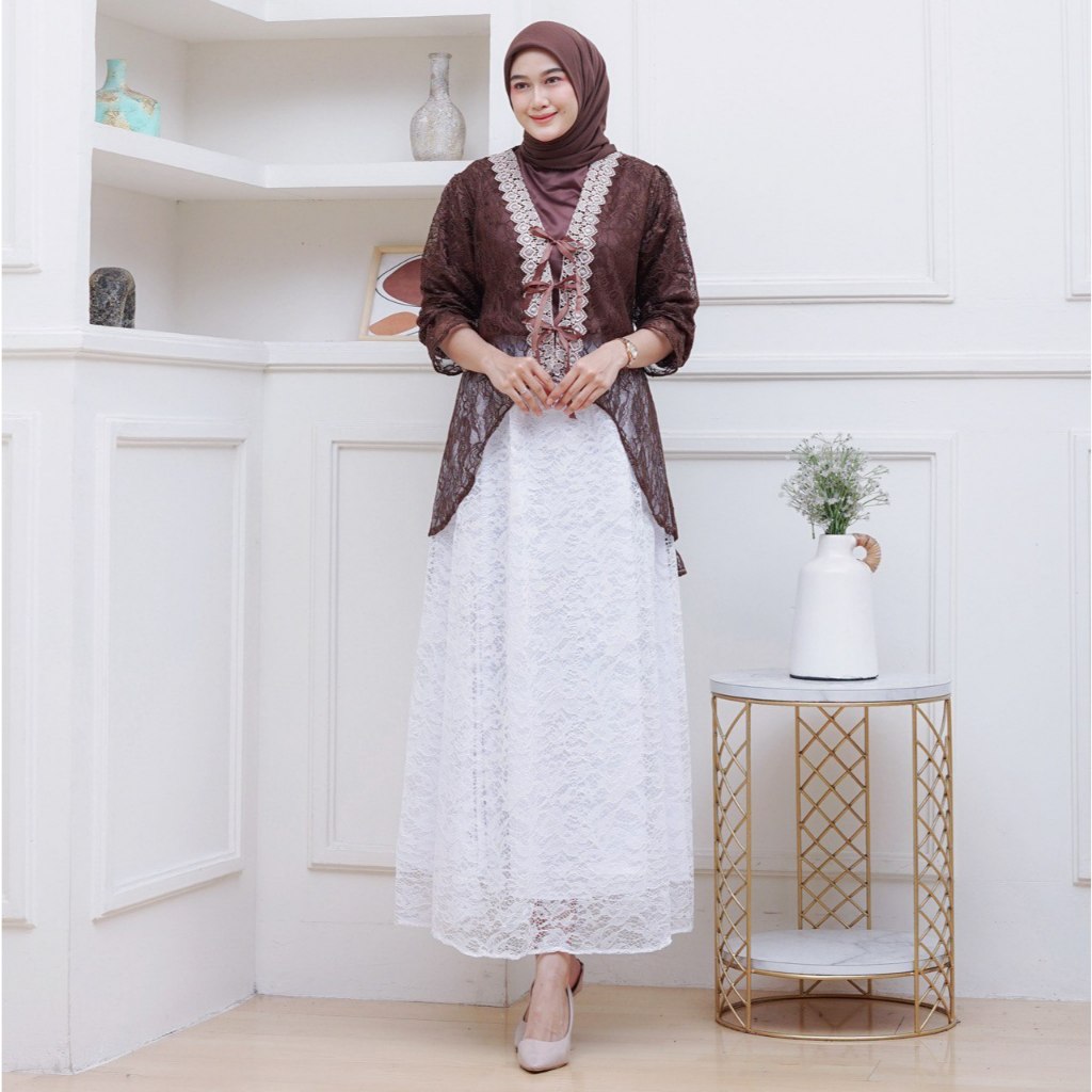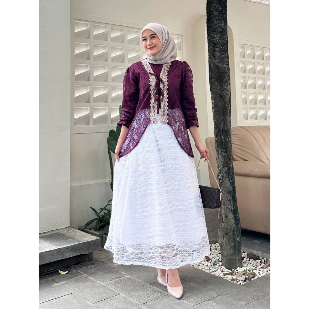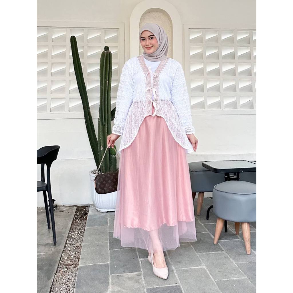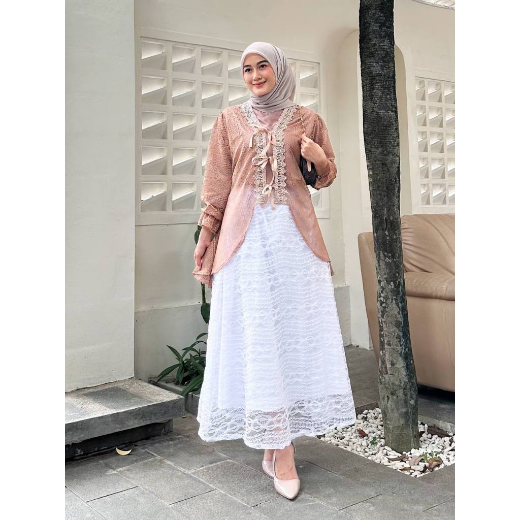 Tunik Wisa Outer Tille Brukat Cardigan Atasan Kondangan Lebaran Raya Bridesmaid Wisuda Pesta Renda