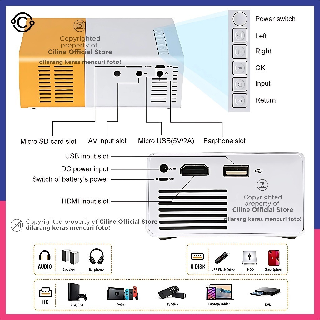 Mini Proyektor LED YG300 / YG-300 / YG 300 LCD Portable Projector Home / Kuning / LED Mini Proyektor Set NEW