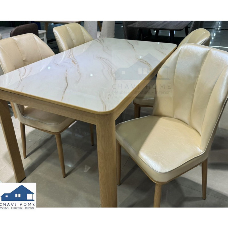 CHAVIHOME SET MEJA MAKAN MARMER MARBLE NEW MATTO DENGAN NEW SET KURSI SHABBY