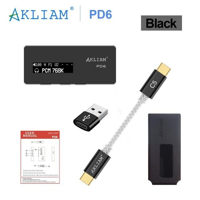 AKLIAM PD6 ES9039Q2M DAC CHIP USB TYPE C TO 3.5MM / 4.4MM ADAPTER - BLACK