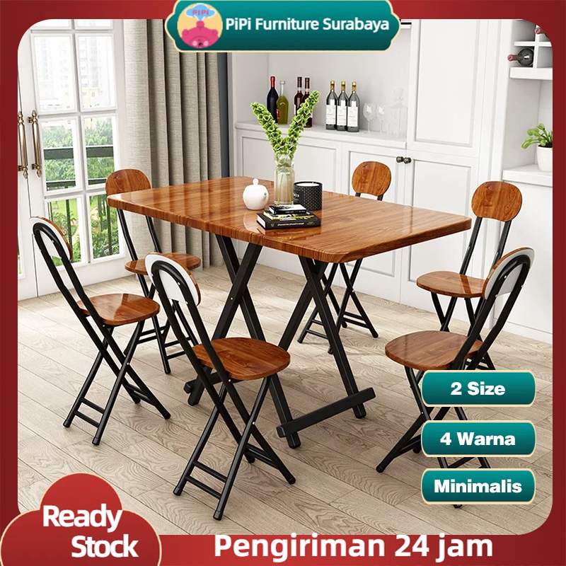 PIPI FURNITURE MEJA LIPAT / MEJA MAKAN /MEJA KERJA / MEJA MAKAN LIPAT / MEJA MAKAN PORTABLE / MEJA LAPTOP PORTABLE / MEJA LIPAT SET 4 KURSI / MEJA MAKAN 100X60CM