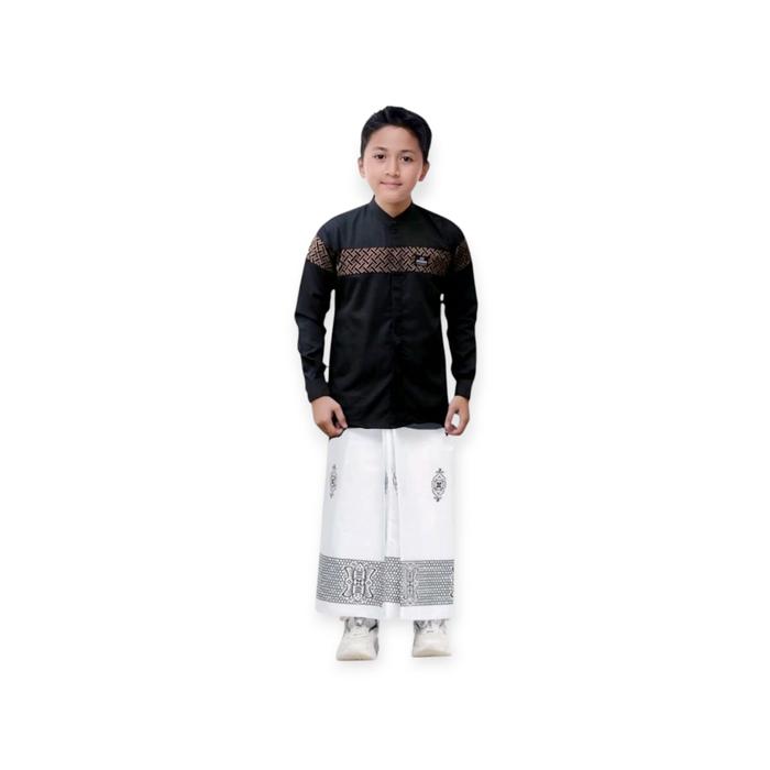 PAKET LENGKAP SARKO SARUNG KOKO ANAK USIA 5-13 TAHUN SIZE M L XL BANYAK VARIASI WARNA MOTIF - KOKO PUTIH/SARWON HITAM, M 5-7 TH