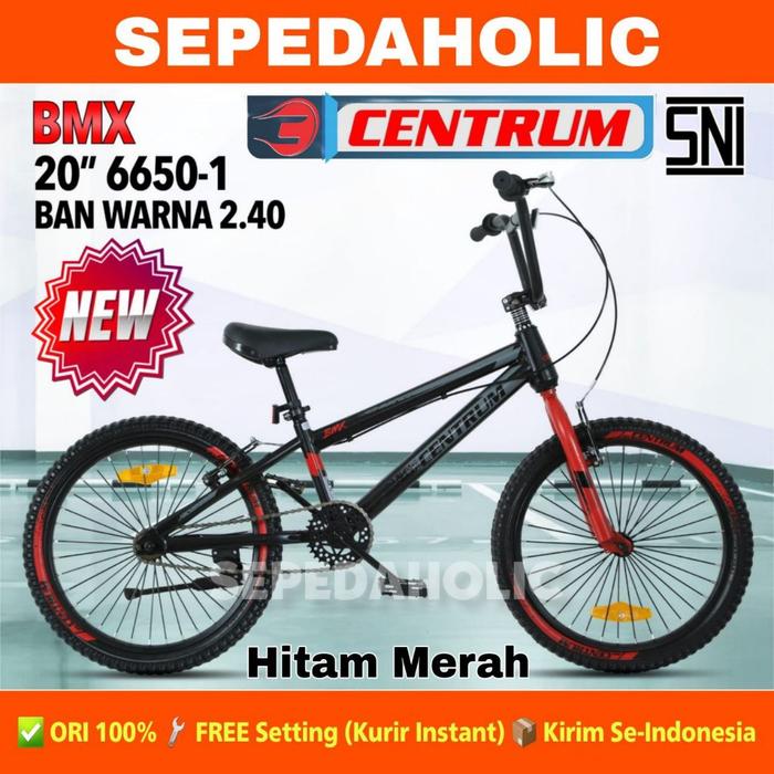 SEPEDA ANAK LAKI BMX CENTRUM 6650-3 BAN 2.40 & JUMBO 3.00 UKURAN 20 INCH USIA 8-12 TAHUN - (BAN 2.4) HITAMMERAH