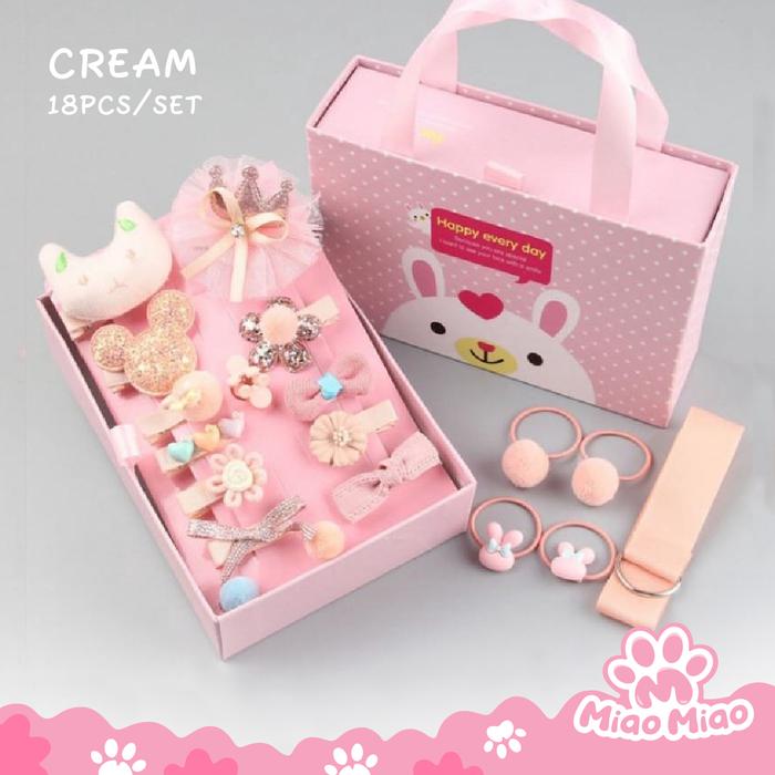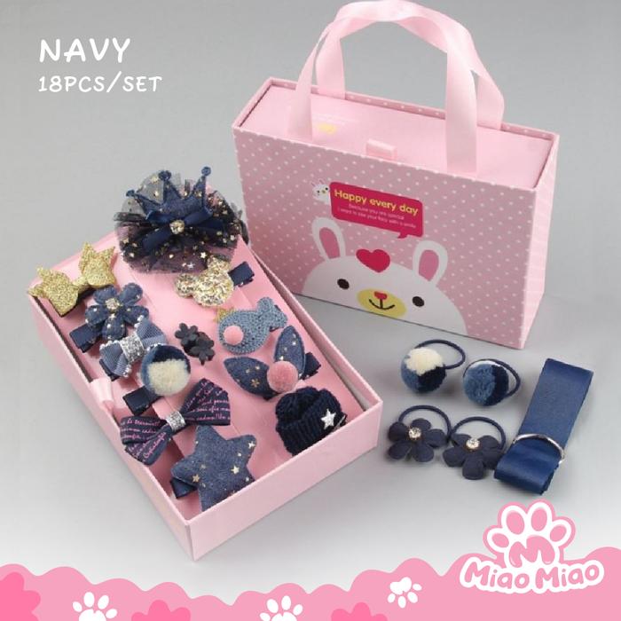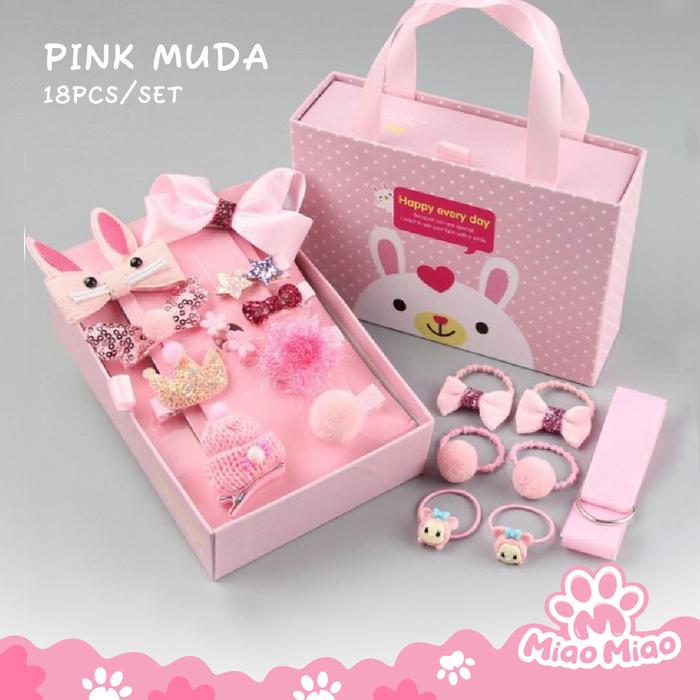 18 Pcs/Set Ikat Rambut Dengan Gift Box - Jepit Rambut Anak Perempuan - Hadiah Anak Perempuan - Pink Tua