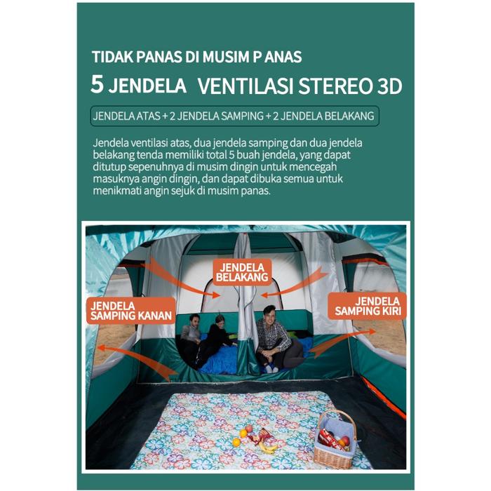 TENDA CAMPING 4-6 ORANG 3.32.11.8M PORTABLE WATERPROOF CAMPING TENT - VERSI 1-2 ORANG