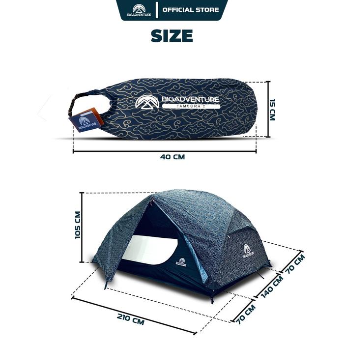 BIGADVENTURE TAMBORA SERIES - TENDA 2 ORANG UNTUK CAMPING OUTDOOR 210T RIPSTOP POLYESTER PU 3000MM UPF 50+ DAN PEG ALUMI