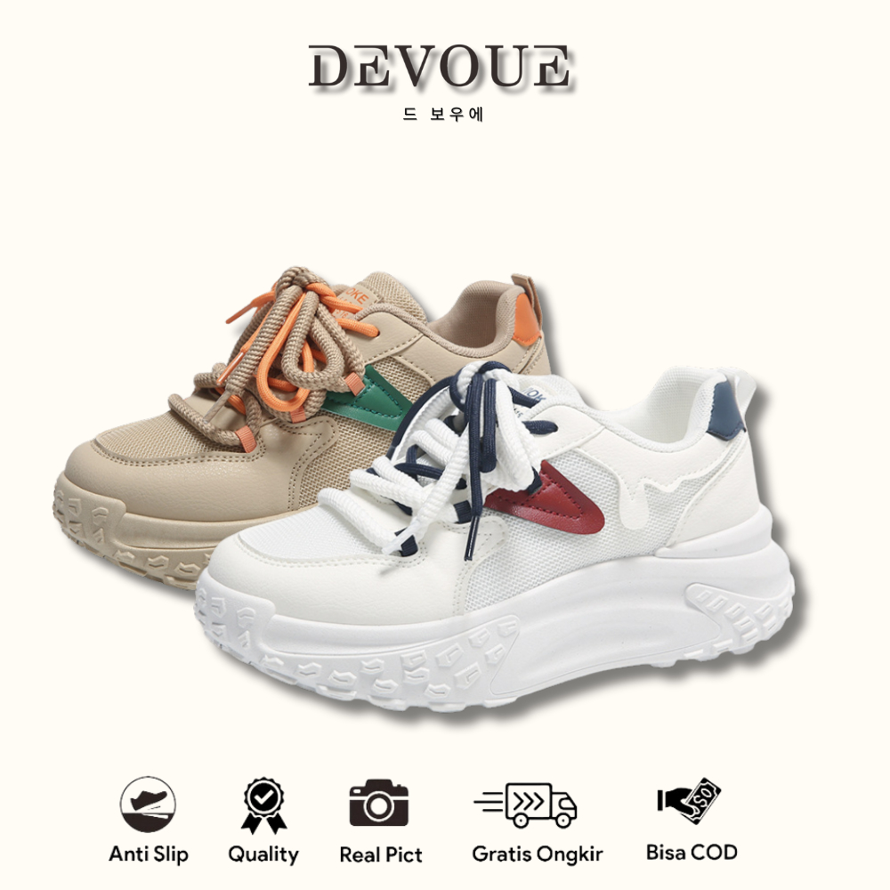 DEVOUE - #044 Sepatu Wanita Sneakers Wanita Model Korea Import Premium Quality Casual Shoes Tinggi 5CM Free Box
