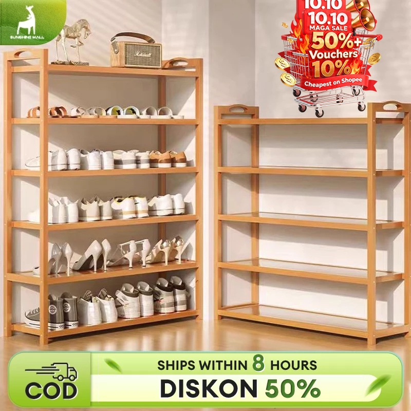RAK SEPATU SUSUN KAYU RAK BAMBOO PENYELENGGARA RAK SANDAL RAK SEPATU MINIMALIS SERBAGUNA AESTHETIC