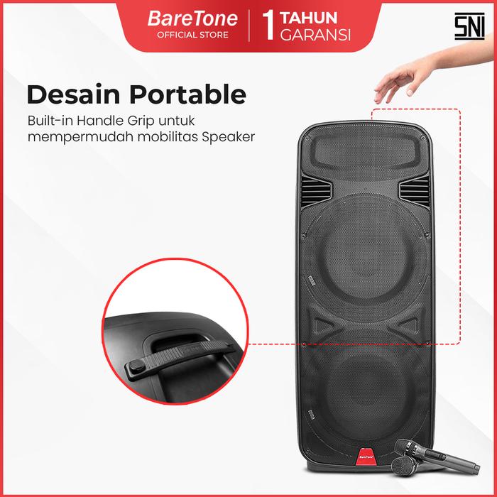 Speaker Portable BareTone PM215 Original 15 Inch Dobel Woofer Powerfull