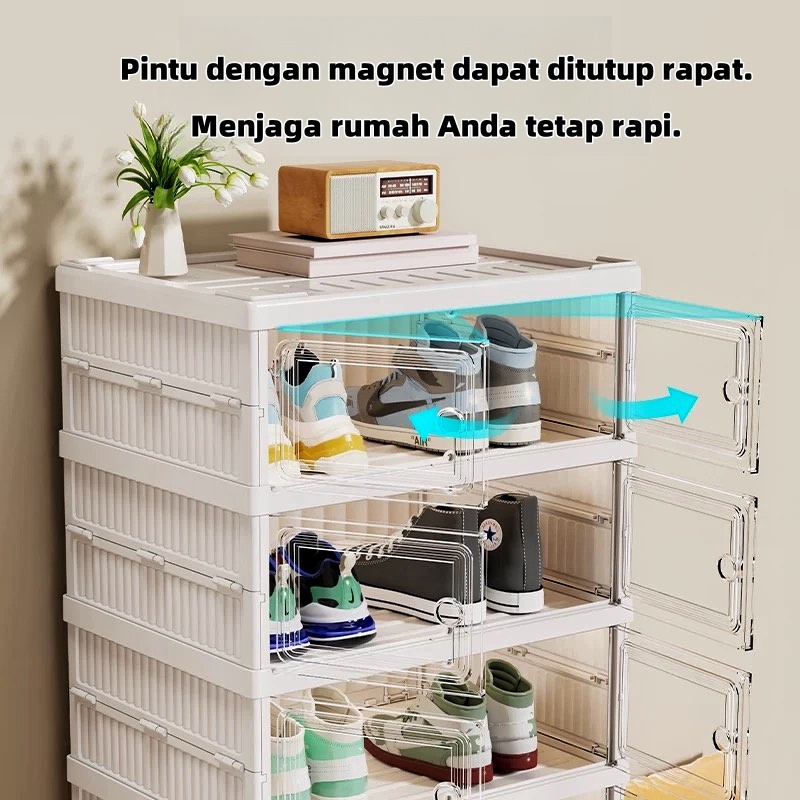 ABC BEAR BEBAS INSTALASI SHOE STORAGE BOXES LIPAT DAN SIMPAN MULTIFUNGSI LEMARI SEPATU TERTUTUP BOX