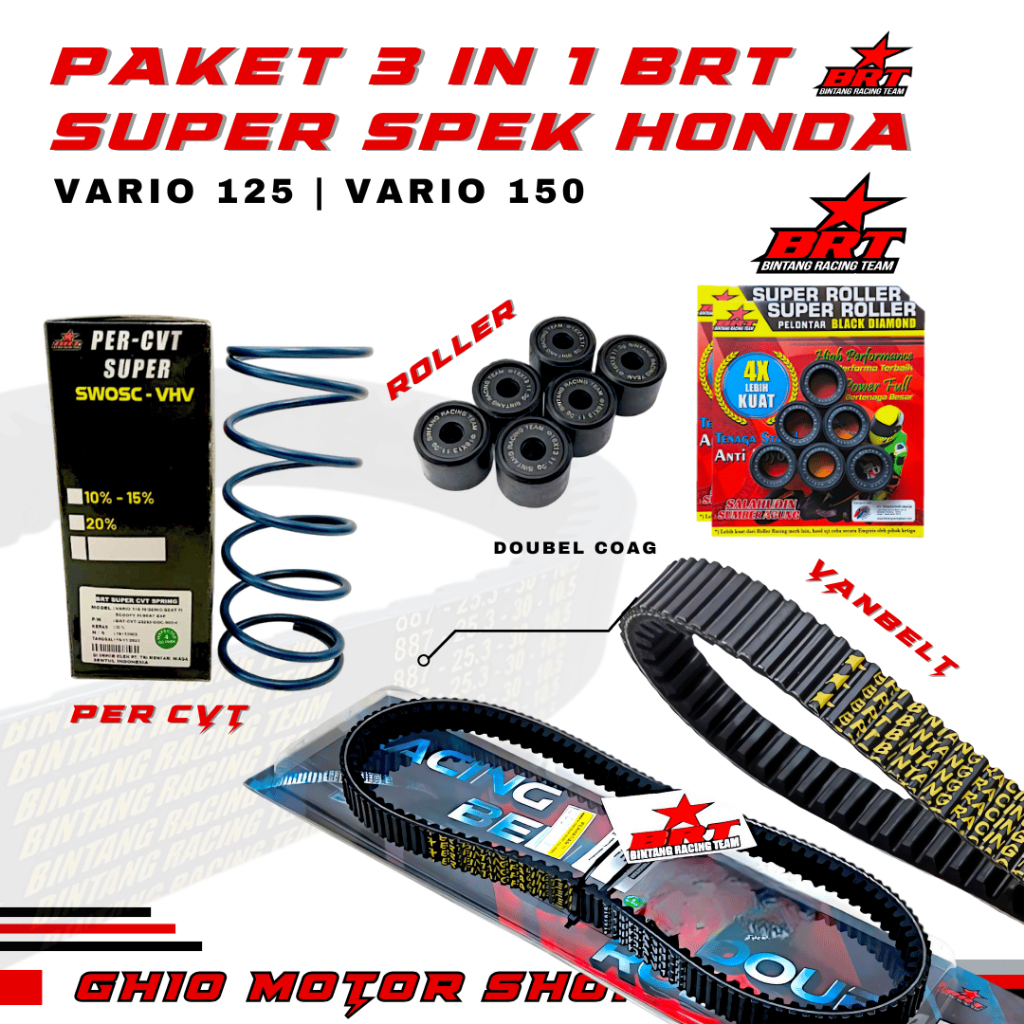 Paket Kirian CVT 3in1 BRT Vario 125 Old & New KZR Vario 150 V - Belt Roller Per CVT BRT Ghio Motor