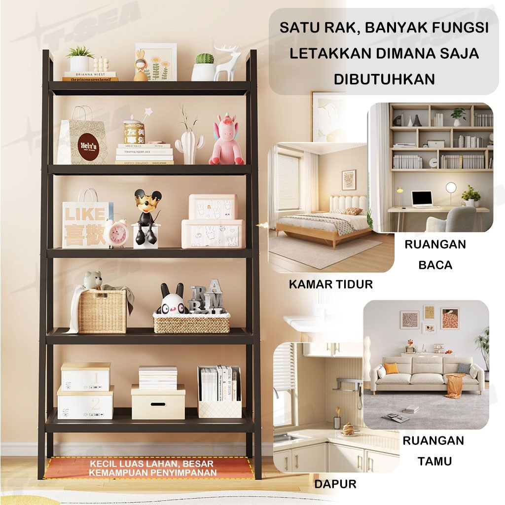 T-SEA 3/4/5RAK BUKU RAK RUANG TAMU SERBAGUNA RAK BUKU MINIMALIS AESTHETIC RAK BESI RAK BUNGA