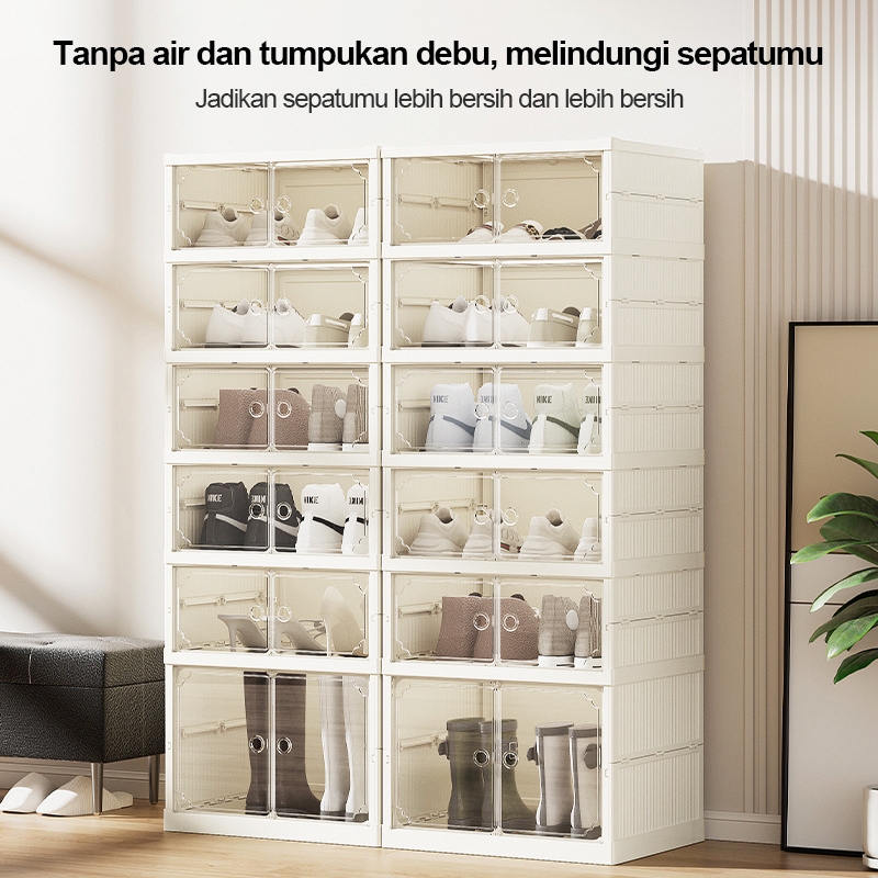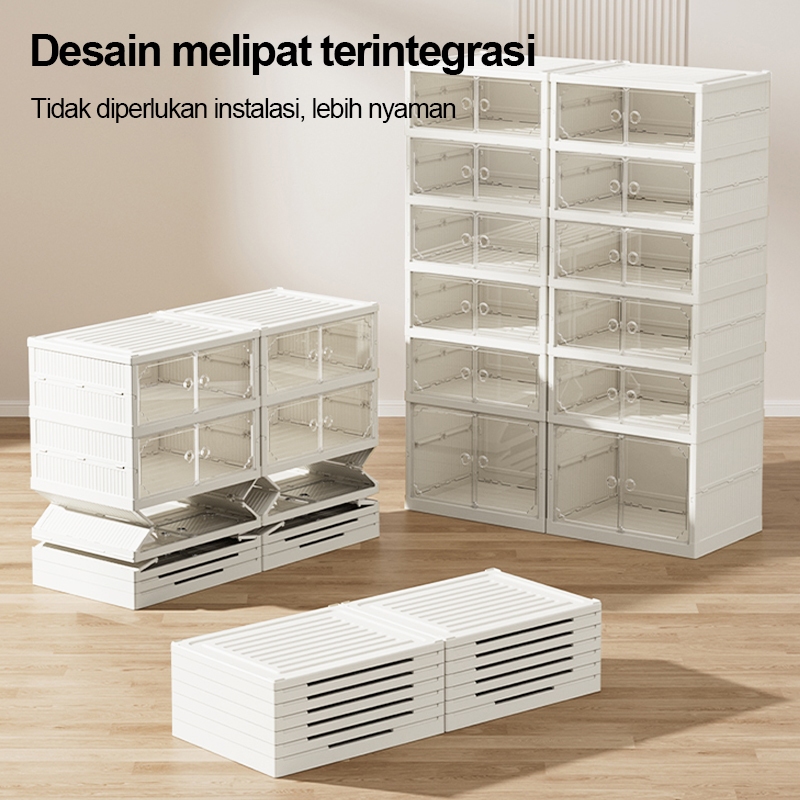 【TIDAK PERLU INSTALASI】LEMARI SEPATU RAK SEPATU SUSUN LIPAT TERTUTUP BENING LEMARI LIPAT PINTU MAGNET/KOTAK SEPATU LIPAT /KOTAK PENYIMPANAN SERBA GUNA